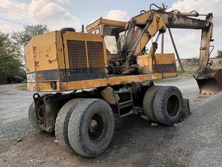 ექსკავატორი არის ძრავის გარეშე, სხვა აგრეგატები მუშა მდგომარეობაშია.